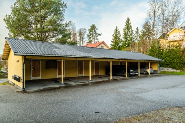 Asunnolla oma autokatospaikka jonka yhteydessä oma tilava varasto.
