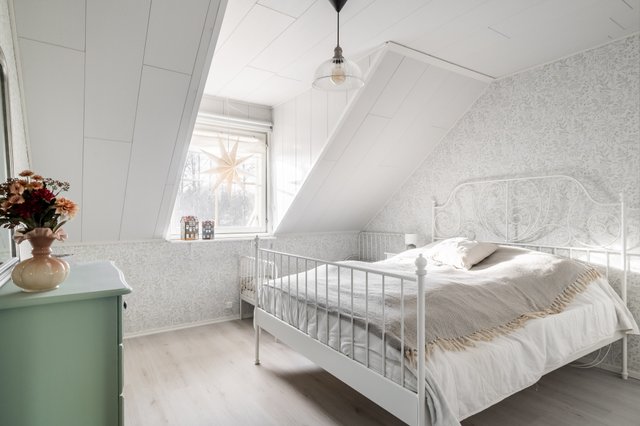 - Yläkerrassa 2kpl makuuhuonetta sekä kolmas makuutila keskitilassa.