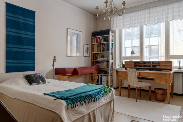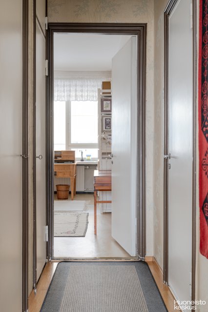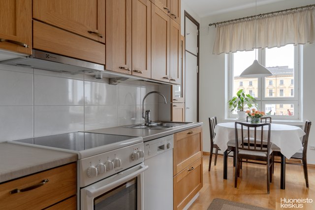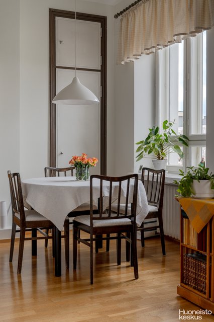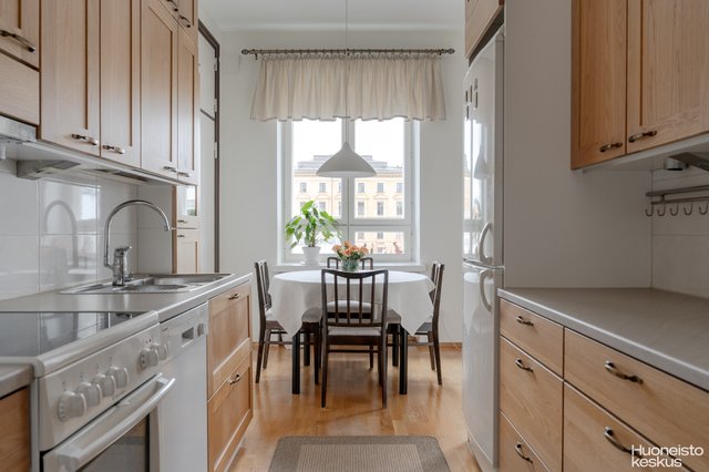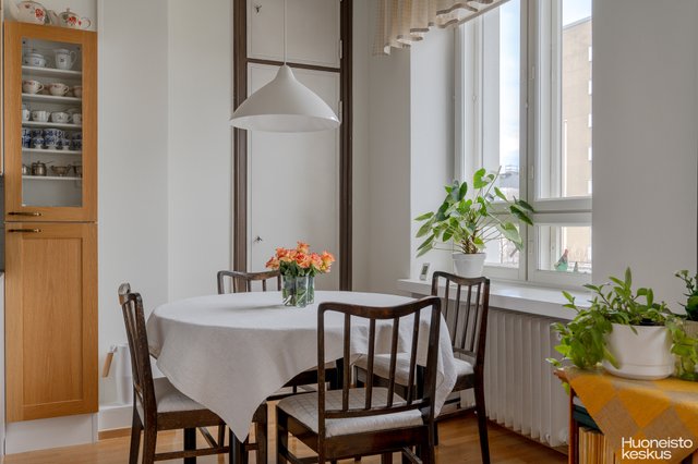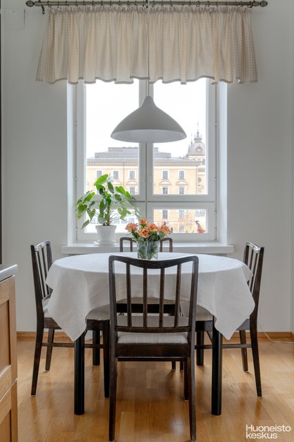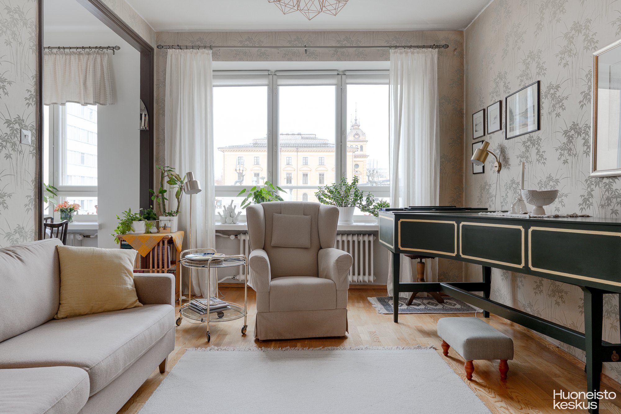 Tämä tilava kaksio sijaitsee aivan Oulun keskustassa lähellä kaikkea. Sen keittiön ja olohuoneen ikkunoista näkyy kaupungintalo ja vuodenaikojen vaihtelu sisäpihan istutusalueella. Asuntoa on remontoitu vuosien varrella hukkaamatta kuitenkaan sen iän tuomaa luonnetta.