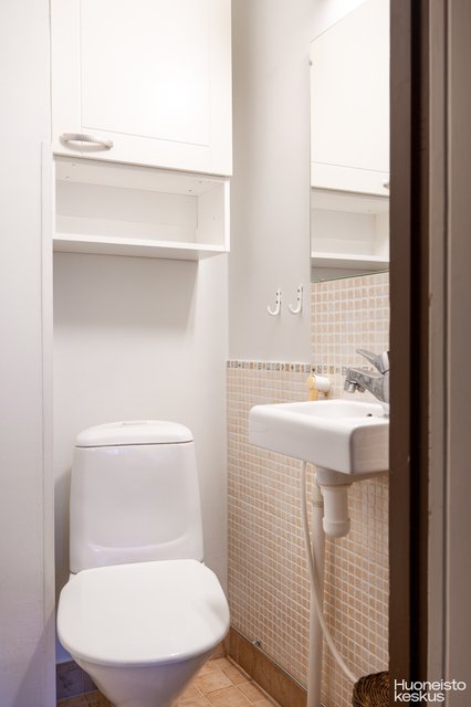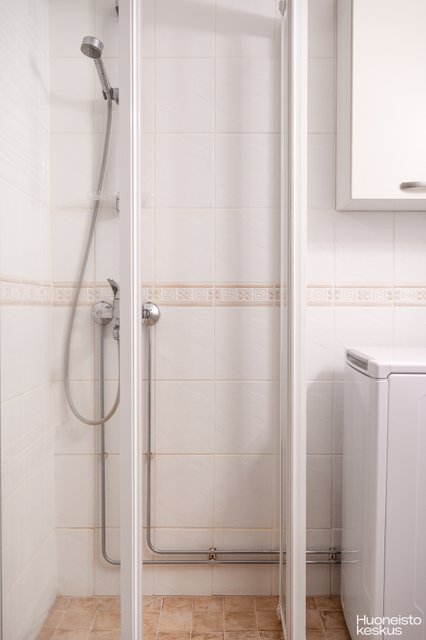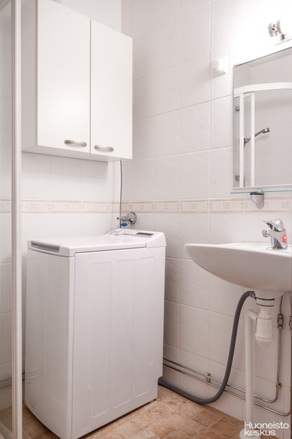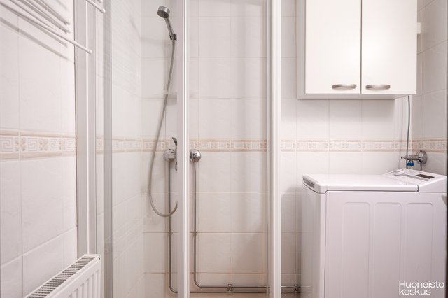 - Suihkukaappi, pesukoneliitäntä, peili, ja seinäkaappi
