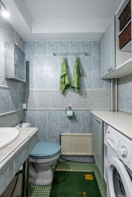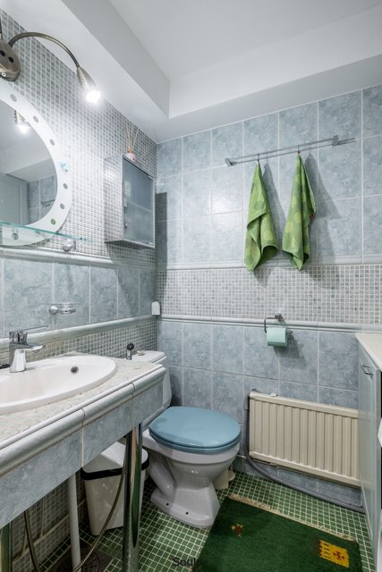- WC-istuin, peilikaappi, pesuallas, suihkukaappi, ja bidee-suihku