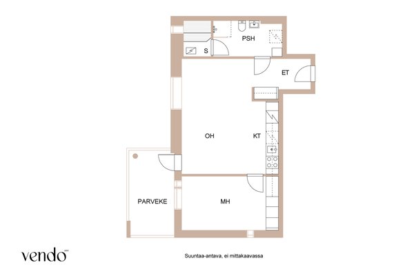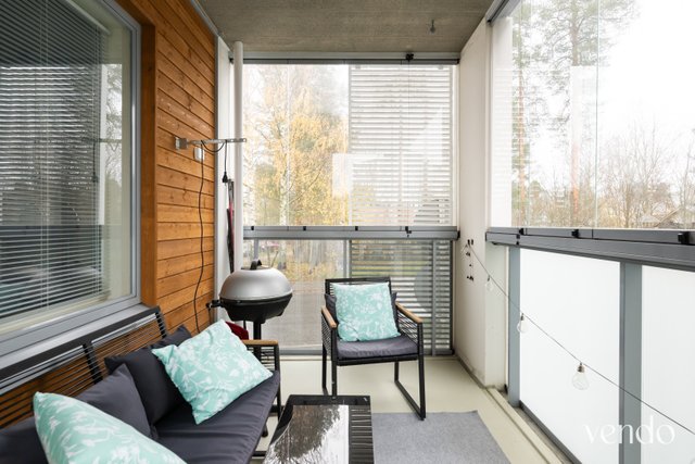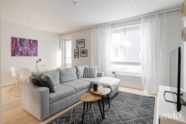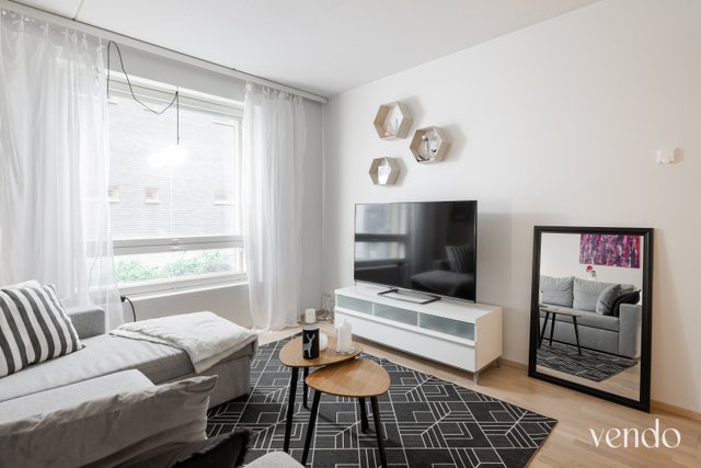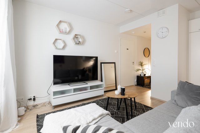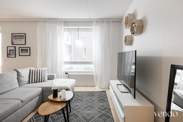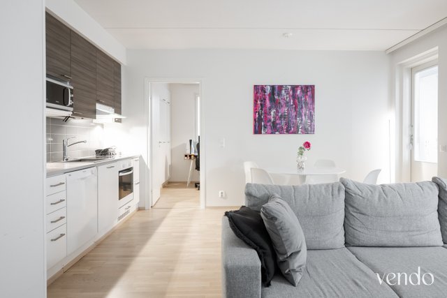 Huoneiston neliöt ovat toimivat. Keittiö sekä olohuone ovat yhtenäistä avaraa tilaa. Kylpy- ja saunatilat ovat siistit, myös pyykkihuollolle on järjestetty paikkansa. Asuinmukavuutta on lisäämässä kaukolämpöön liitetty lattialämmitys, joka myös parantaa asunnon kalustettavuutta.