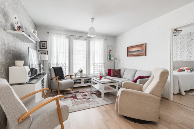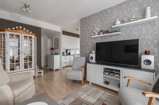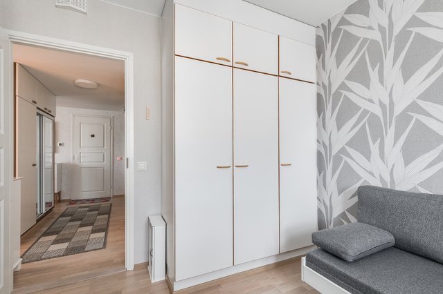 Asunnossa on kaksi makuuhuonetta, joissa molemmissa on hyvin säilytystilaa, lisäksi löytyy vielä myös vaatehuone. Keittiö on modernisoitu viime vuosina, ja sieltä on käynti lasitetulle parvekkeelle, joka toimii mukavana lisätilana. Keittiöstä löytyy myös viilennyspumppu kesän helteisiin. Kylpyhuone/wc ja sauna on remontoitu vuonna 2021 ja ne tarjoavatkin viihtyisät tilat rentoutumiseen. Asunnossa on myös valokuitu ja langattoman verkon päätelaite wifi-yhteydelle.