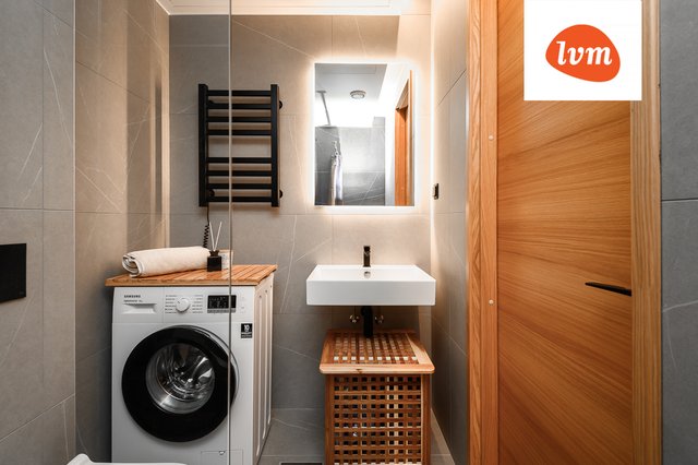 - WC-istuin, suihku, pesukone, suihkuseinä, peili, ja pesuallas