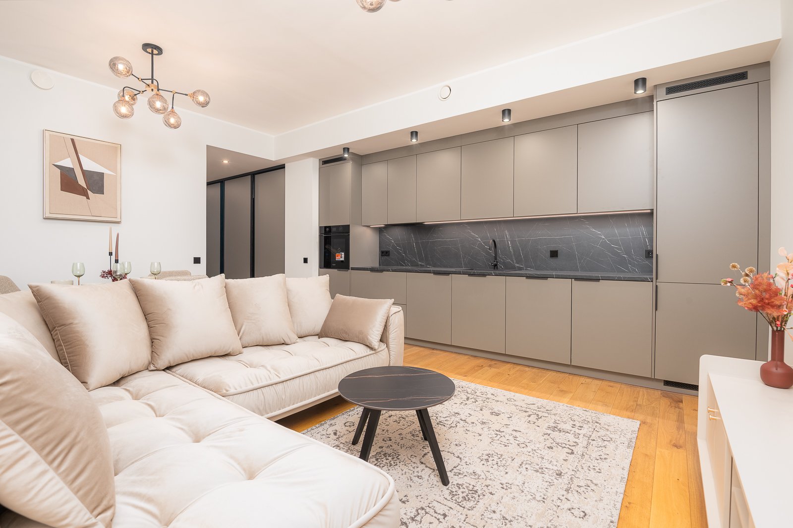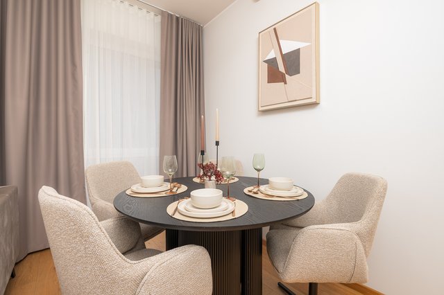 Papiniidu 56-10 on hyvin suunniteltu 3-huoneinen asunto, joka sijaitsee rakennuksen 3. kerroksessa. Asunnossa on 2 makuuhuonetta, avoin keittiö-olohuone ja kylpyhuone. Lattiasta kattoon ulottuvat ikkunat avautuvat auringonnousuun. Bisly-älykotijärjestelmä auttaa pitämään sähkön ja lämmityksen kulut hallinnassa.