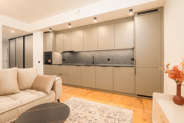 Asunnon sisätiloissa on käytetty korkealaatuisia ja kestäviä materiaaleja. Korkeat sisäkatot ja kolmelasiset energiatehokkaat lattiasta kattoon ulottuvat PVC-ikkunat lisäävät asuntojen avaruutta. Olohuoneen lattiat on päällystetty luonnollisella massiiviparketilla. Kylpyhuoneissa on laadukkaat saniteettikalusteet sekä kivilaatta- ja posliinipintaiset laatat. Asunnossa on vesikiertoinen lattialämmitys, lämmön talteenotolla varustettu ilmanvaihto ja jäähdytysvalmius.