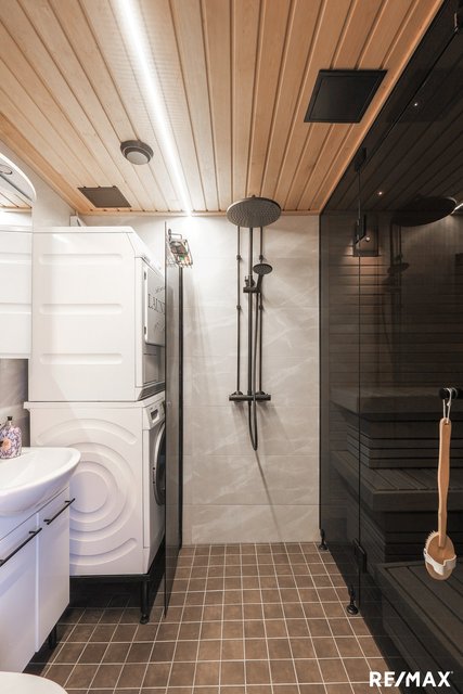 Kylpyhuone remontoitu ja uusi oma sauna tarjoaa rentouttavat löylyt omassa rauhassa. (muutostyö lopputarkastettu 25.11.2025)