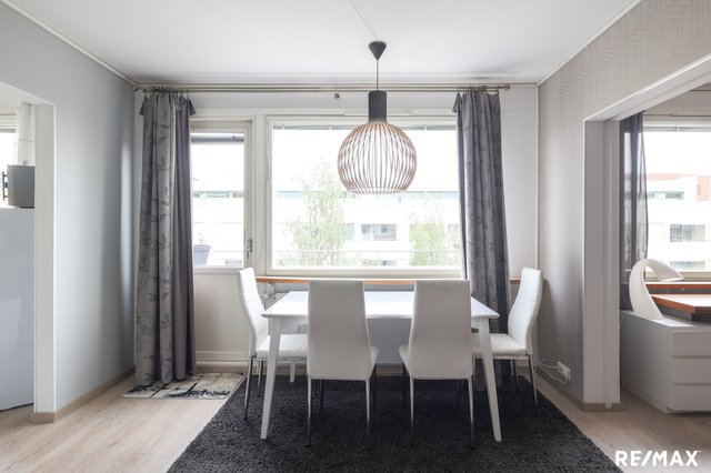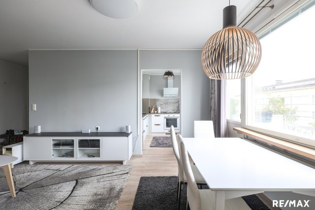 Parveke avautuu itään, mikä tuo mukavasti valoa asuntoon. Taloyhtiössä on myös hyvät yhteiset tilat, kuten pesutupa ja urheiluvälinevarasto. Liikenneyhteydet ovat erinomaiset: lähellä on bussipysäkki, raitiovaunupysäkki ja juna-asema, joten liikkuminen on helppoa.
