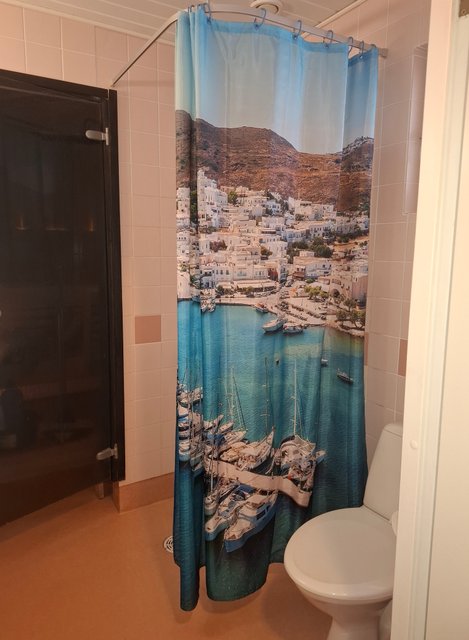 - WC-istuin, suihku, pesukoneliitäntä, lattialämmitys, bidee-suihku, peilikaappi, ja pesuallas