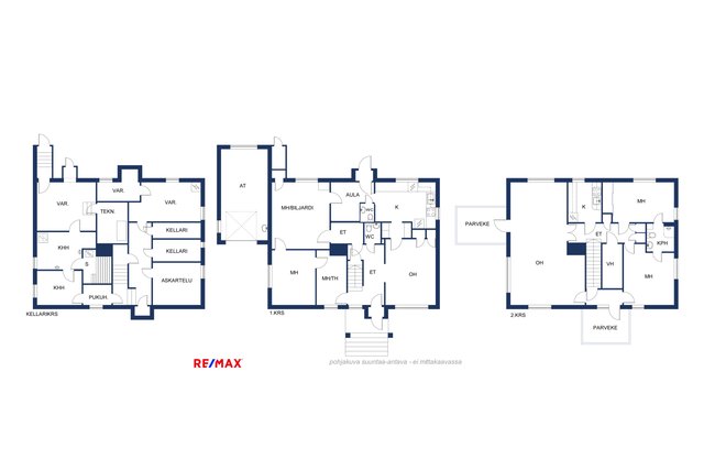 - Kaapistot, vaatehuone, ullakko, ja kellari lämmin autotalli