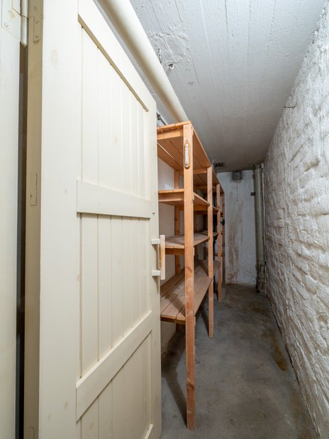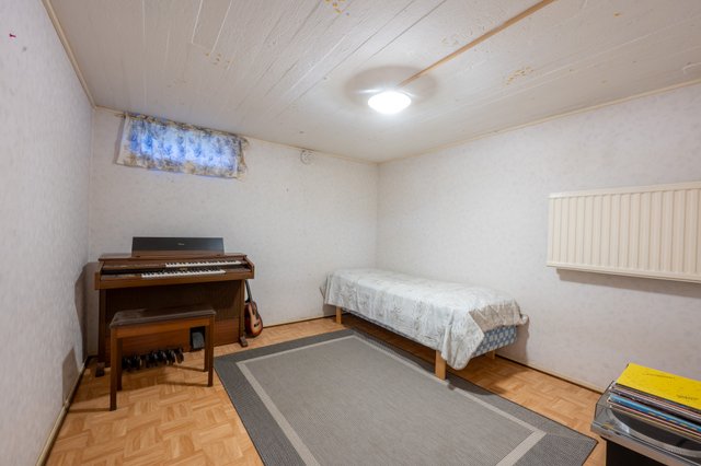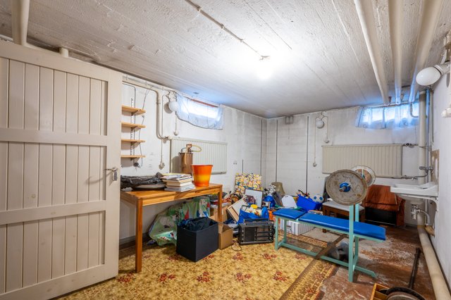 - Kellarikerroksessa sijaitsee pukuhuoneen, kodinhoitohuoneen, kylpyhuoneen ja saunan lisäksi useita varasto- tai harrastekäyttöön soveltuvaa tilaa. Tällä hetkellä askartelutilassa on majoitettu vieraita, yksi varasto palvelee polttopuuvarastona, toinen tavaroiden säilytykseen. Juomat ja säilykkeet säilyvät kellarissa ja perunakellarissa. Keskiössä sijaitsee tekninen tila, jossa on kaukolämpölaitteisto sekä tiilimuurattu uuni, jolla voi halutessaan lämmittää puullakin. Ullakolla on runsaasti keskeltä kävelykorkeata säilytystilaa. Auto säilyy lämpimässä autotallissa säältä suojassa. Talli on kerrosalaltaan n. 28 m2 suuruinen. Auton lisäksi sinne mahtuu hyvin työkalut ja vaikkapa polkupyörät. Kaksi parveketta ovat molemmat katettuja ja osoittavat kaakkoon ja lounaaseen. Lounaan suuntaiselta parvekkeelta on idyllinen näkymä takapihalle (lounaaseen) ja kirkkopuistolle. Takapihalla on huvimaja, jonka tiilimuuratussa grillissä ja leivinuunissa valmistuu koko perheen herkut.