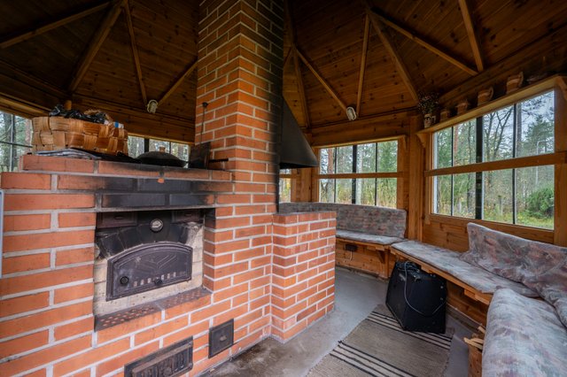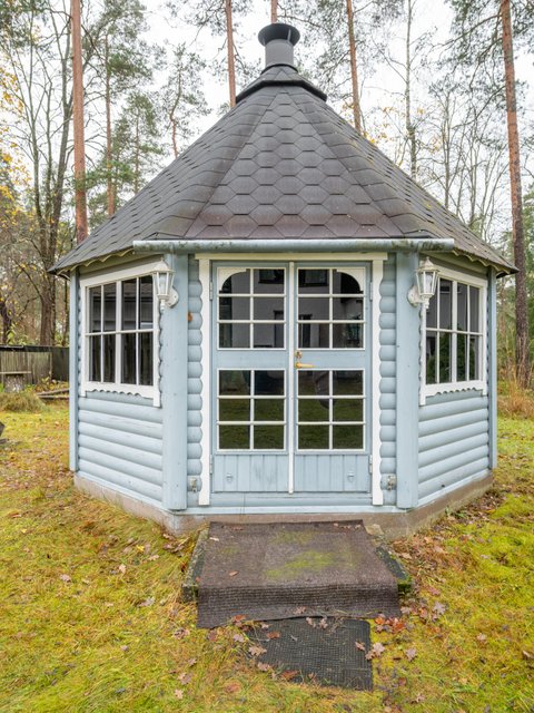 - Huvimaja, jossa komea paikalla muurattu tiiligrilli / leivinuuni.