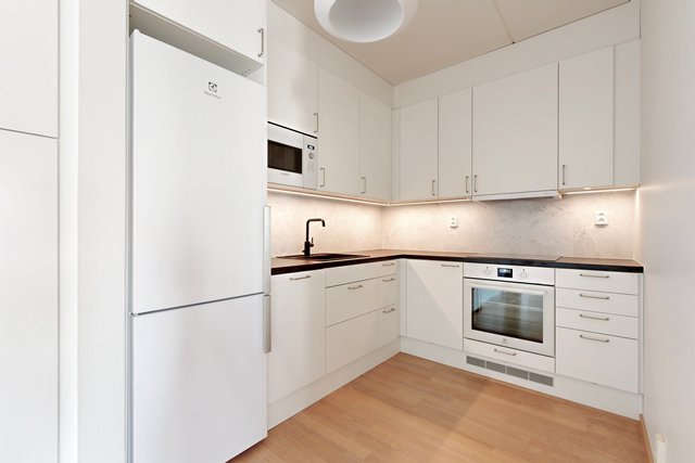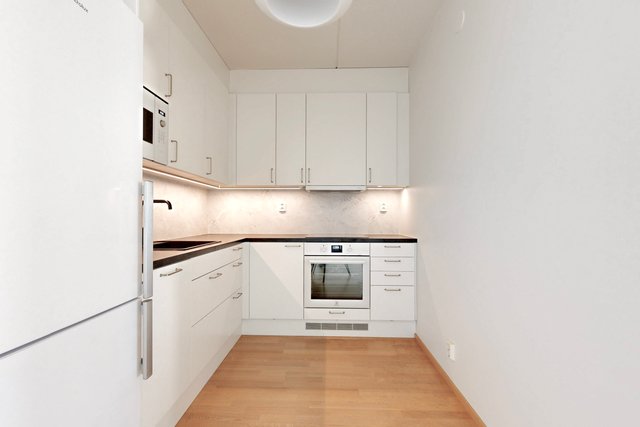 - VARUSTUS: Induktioliesi, Erillisuuni, Liesikupu, Hana, Kaapisto, Allas, Astianpesukone, Jääkaappipakastin. Integroitu mikroaaltouuni. TYÖTASO: Laminaatti. SEINÄT: Välitila levy. LATTIA: Parketti.