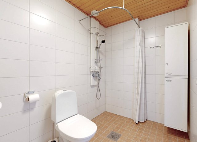 - VARUSTUS: Suihku, WC-istuin, Pesukoneliitäntä, Allaskaappi, Allas, Hana, Peilikaappi, Bidee-suihku, Kaapisto, Lattialämmitys. SEINÄ: Laatta. LATTIA: Kaakeli.