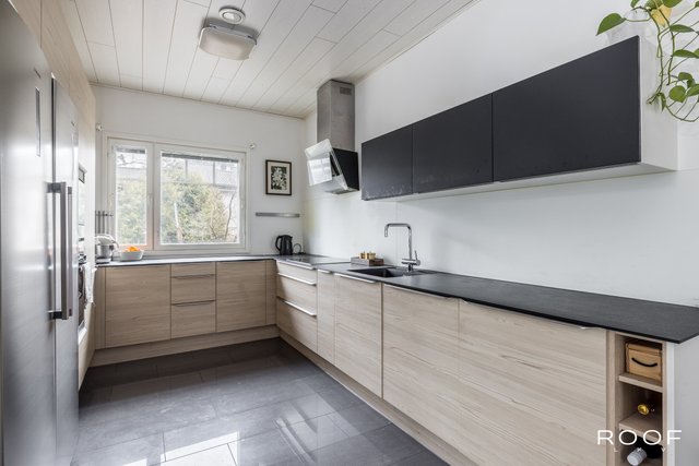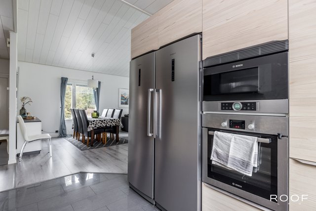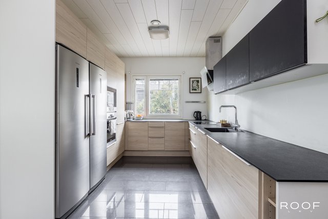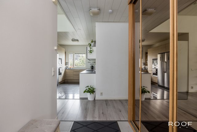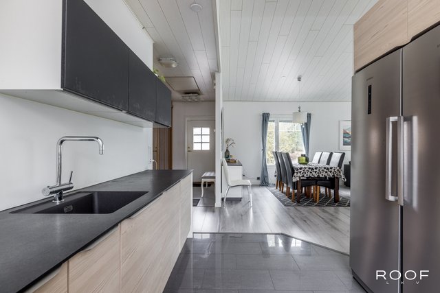 Kodin keskipisteenä on uusittu ja moderni keittiö, jossa on laadukkaat kodinkoneet ja runsaasti säilytys- sekä työskentelytilaa. Vieressä yhdistetty