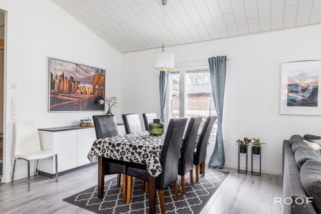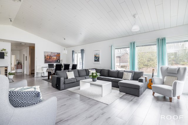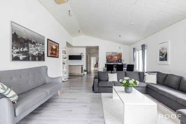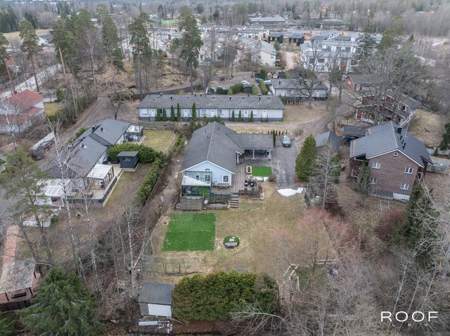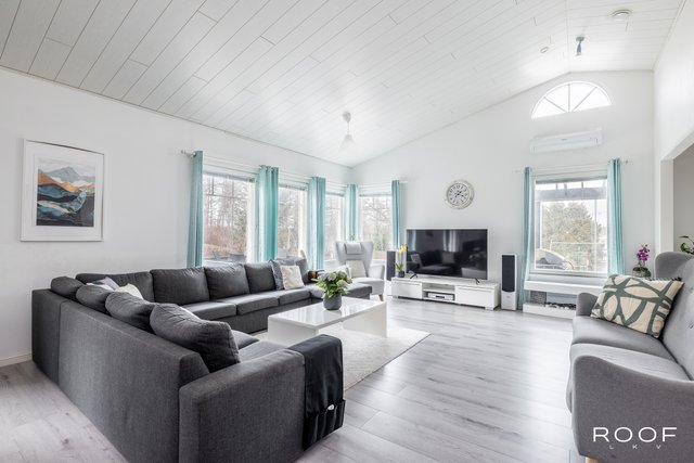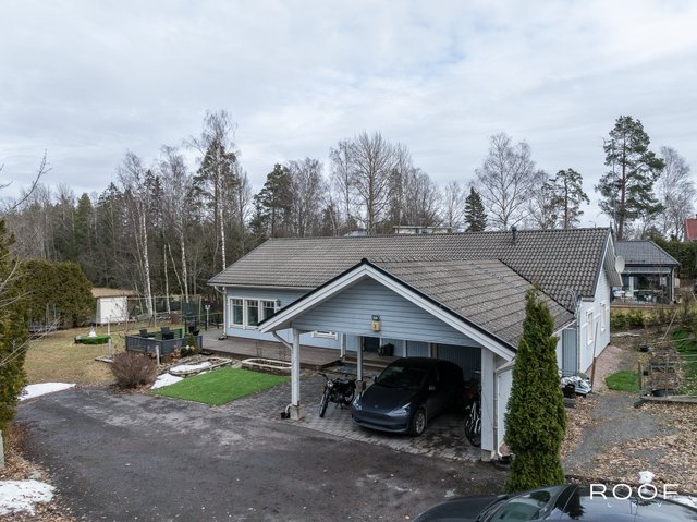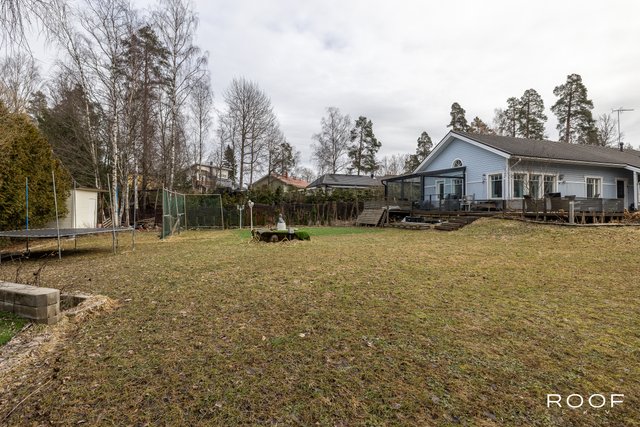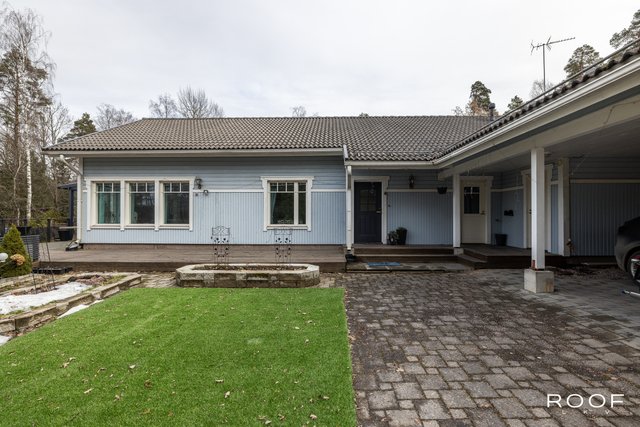 Tämä Espoon Järvenperässä sijaitseva 1-tasoinen koti tarjoaa reilusti tilaa niin sisällä kuin ulkona.