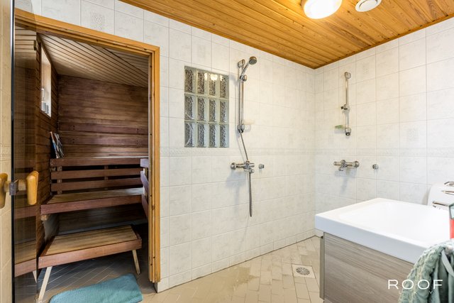 - LATTIA: laatta SEINÄT: maalattu VARUSTEET: allas, pöytätaso, kaapistot, erillinen vaatehuone kulku suoraan ulos.
