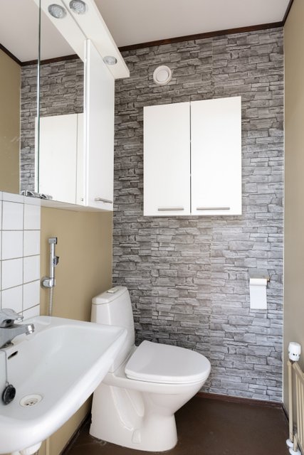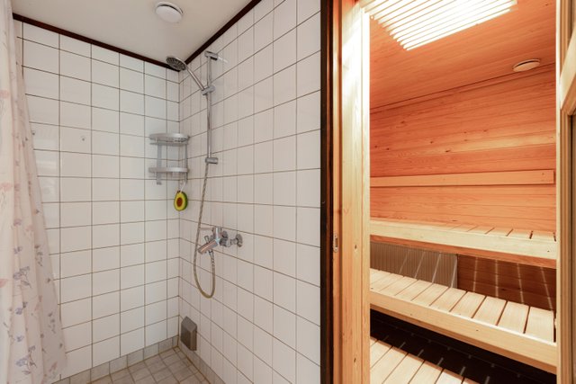 - Suihku, suihkuseinä, ja pesukoneliitäntä
