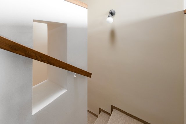 - Kaikissa huoneistoissa on omat seinät. Esim. C ja D eivät ole kiinteästi seinät kiinni vaan huoneistojen välissä on tyhjää viitisen senttiä. Tässä tilassa on mm. kattokaivon poistoputki joka menee sitten viemäriin talon etupuolella. Huoneistoilla on omat tiiliseinät. Tämän huomaa esim. äänieristys on hyvä koska naapurin seinä ei ole samaa betonia kuin oma.