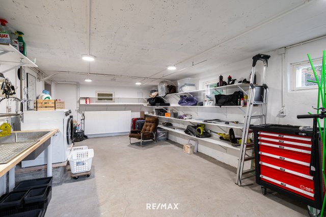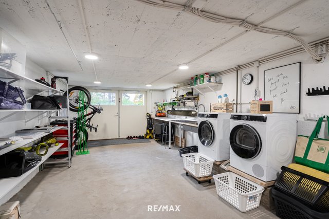 Alakerrassa myös kerrassaan mainio "huoltohuone", jossa pyykinpesu tai fillarin huolto sujuvat mukavasti. Siistiä säilytystilaa löytyy todella paljon.