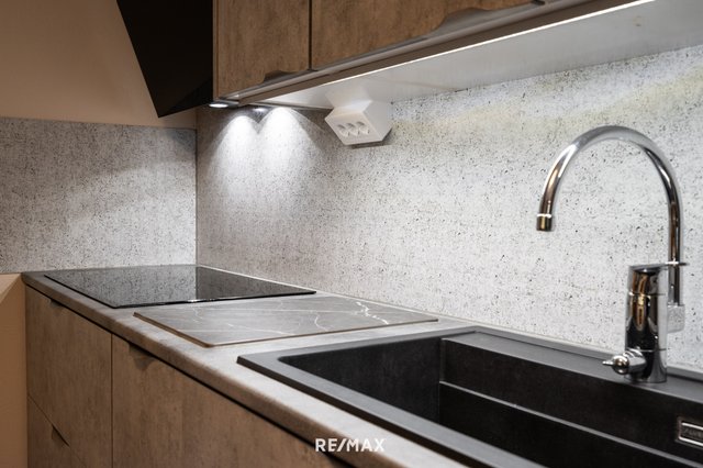 - Pesukoneliitäntä, pesuallas, tila pesutornille, ja pöytätaso