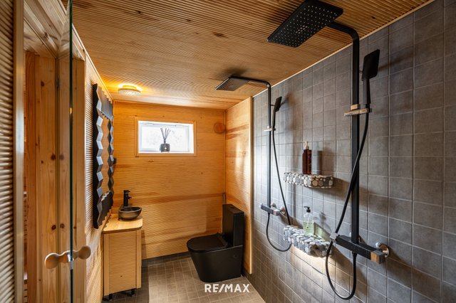 - Upea 2024 valmistunut kylpyhuone, jossa wc, kaksi suihkua sekä pesuallas.