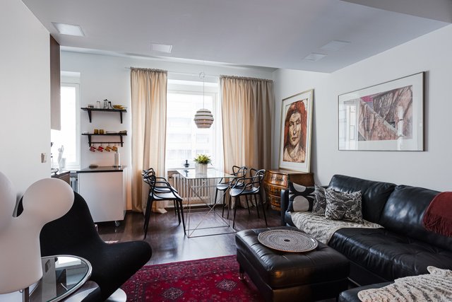Asunnossa on toimiva ja käytännöllinen pohjaratkaisu: tilava olohuone, avokeittiö, erillinen makuuhuone sekä kylpyhuone. Kodin pinnat ja kaapistot ovat hyvässä kunnossa, joten asuntoon pääsee muuttamaan ilman remonttihuolia.