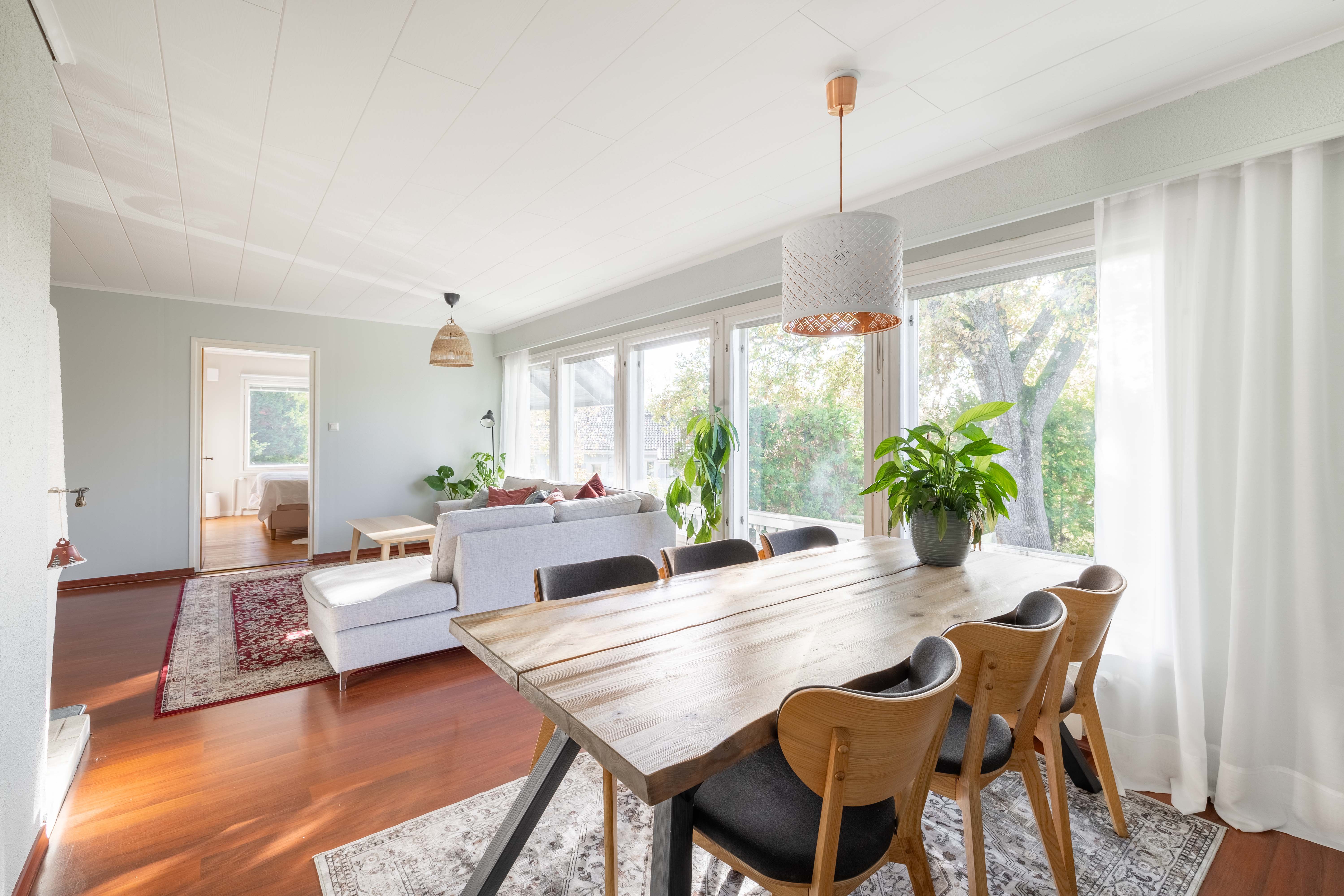 - Kolme makuuhuonetta ja yhdestä tehty ruokailuhuone