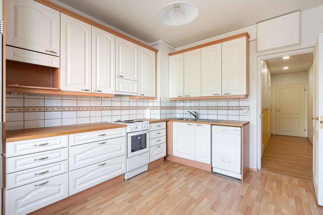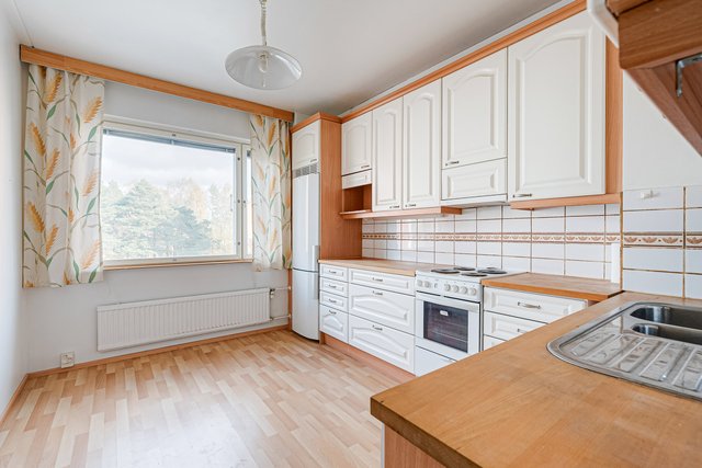 - Kulmahuoneisto, parveke länteen ja keittiön ikkuna pohjoiseen.