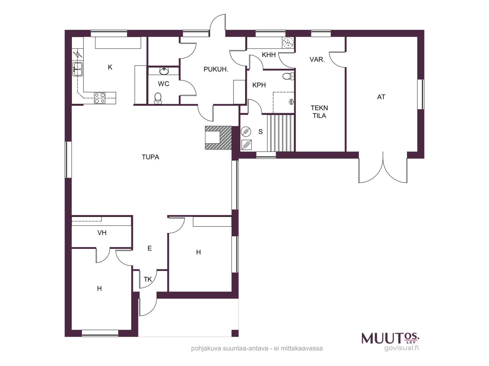 3h, avok, kph/wc, s, khh, 2vh, pukuhuone, tekninentila, autotalli