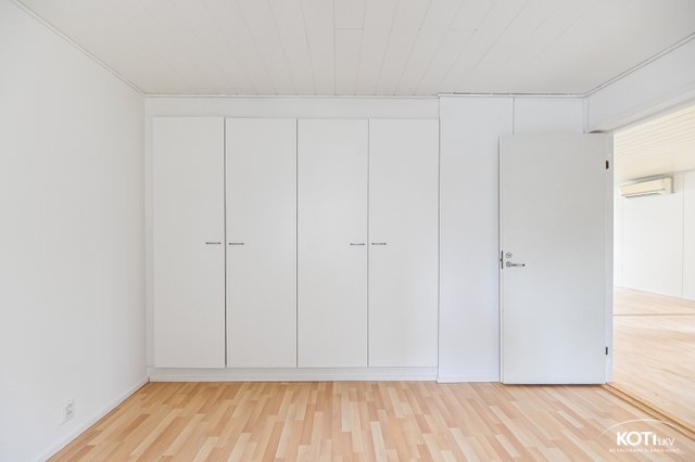 - Olohuoneen lattia parkettia (hiottu 2025) ja seinät maalattu. Keittiön lattia parketti. Makuuhuoneen lattiat laminaattia ja seinät maalattu. Eteisen lattia parketti, jossa liukuovikaapisto.