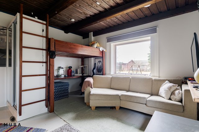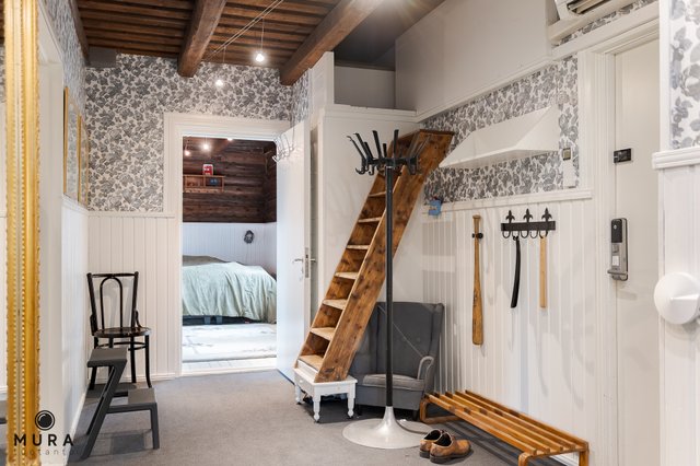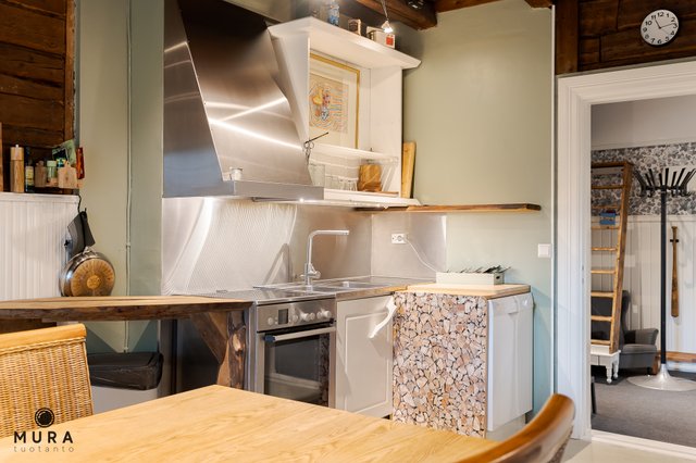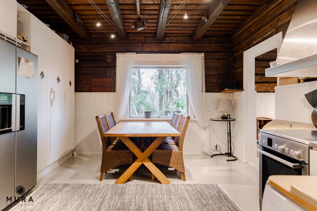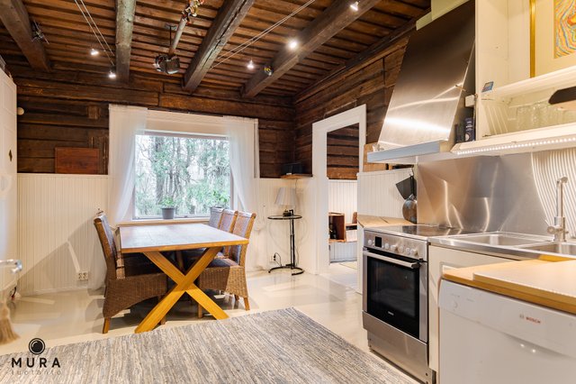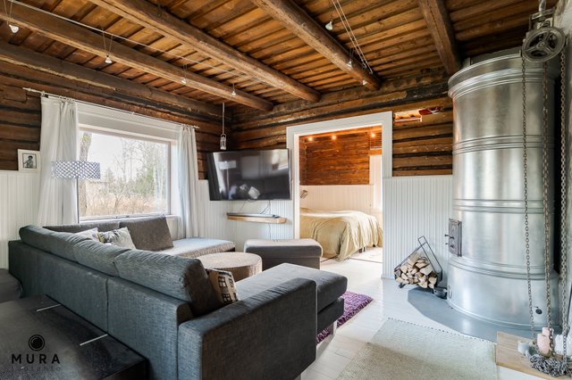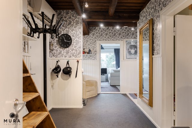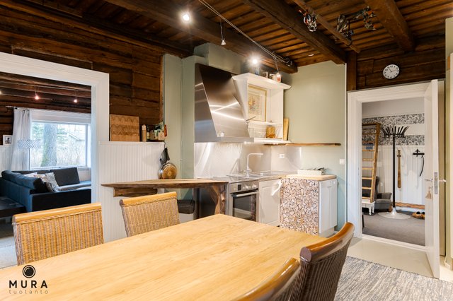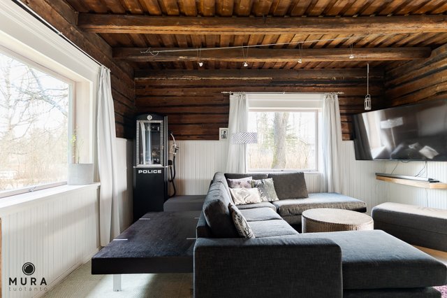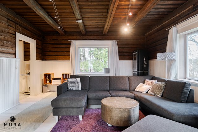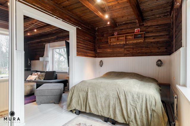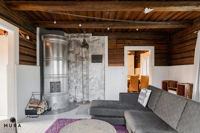 Sisätiloissa korostuvat hirsipinnat, jotka luovat lämpimän ja kutsuvan ilmapiirin. Talo tarjoaa runsaasti historiallista tunnelmaa ja samalla mahdollisuuden toteuttaa unelmiasi. Ullakolle voi laajentaa lisätilaa, rakennusoikeuttakin on jäljellä 89 m².