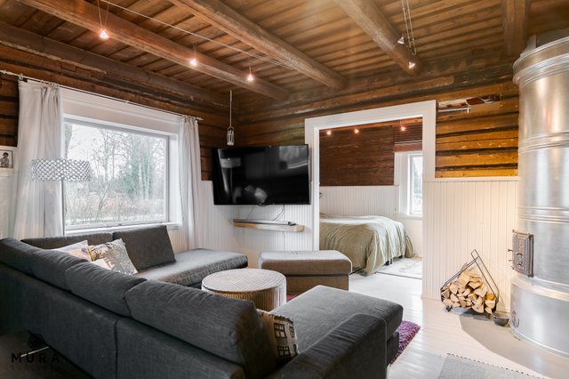 - 2-3 makuuhuonetta, puolipaneeli ja hirsi yhdessä, kahdessa levyseinät ja toisessa hirret näkyvissä