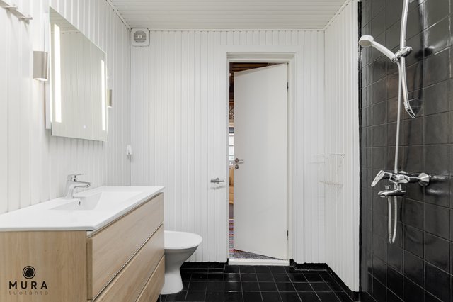 - Pinta-alat perustuvat myyjältä saatuihin tietoihin ja rakennuspiirustuksista laskettuihin arvioihin. Pinta-aloja ei ole tarkistusmitattu, mitattaessa pinta-alat saattavat olla ilmoitettua suurempia tai pienempiä. Hinta ei ole pinta-alaperusteinen. Rakennuspiirustusten mukainen asuinrakennuksen pohjapinta-ala 111,5m2 ja kerrosala 141m2. Asuintilojen pinta-ala on laskettu rakennuspiirustuksista ja siihen on huomioitu kaikki asuinkäytössä olevat tilat, muihin tiloihin on laskettu varasto.