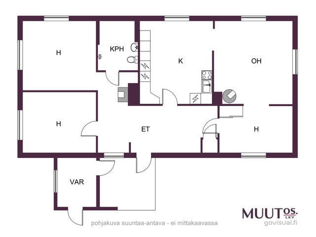 - Pinta-ala ei ole tarkistusmitattu ja todellinen pinta-ala voi olla suurempi tai pienempi, kuin ilmoitettu