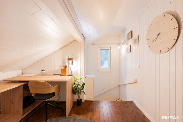 Yläkerrassa on kolme makuuhuonetta, aula ja erillinen wc, mikä tekee kerroksesta hyvin toimivan esimerkiksi lasten tiloiksi. Kellari ja ulkovarasto tuovat runsaasti säilytysmahdollisuuksia – mukana myös lämmin kuisti sekä erillinen kesähuone pihan puolella.