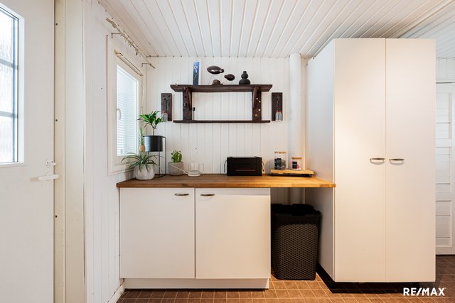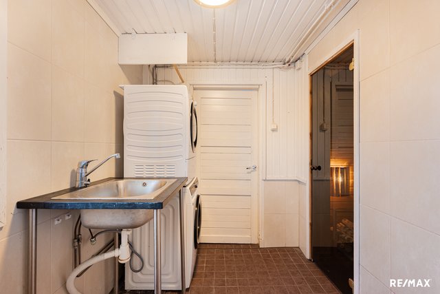 - Kodinhoitohuoneessa tasot ja kaapistot sekä pesukoneliitäntä.