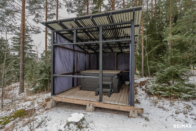 Pihapiiri on viihtyisä ja monipuolinen, ja metsään rajoittuva tontti tekee ympäristöstä poikkeuksellisen rauhallisen. Täällä voit nauttia luonnon äänistä, rauhasta ja omasta tilasta.