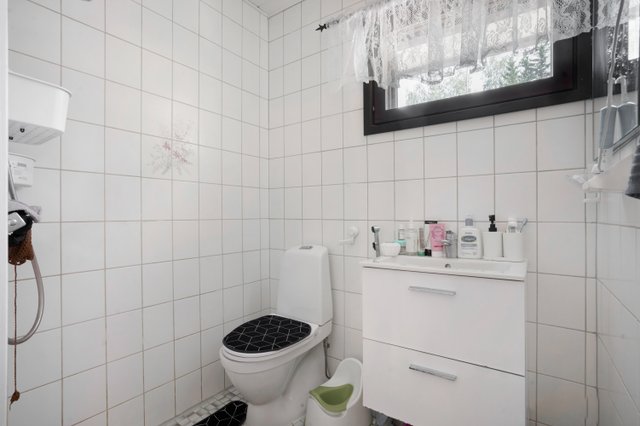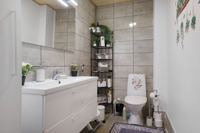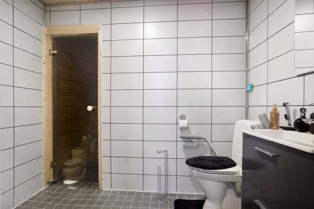 - WC-istuin, suihku, lattialämmitys, peili, pesuallas, allaskaappi, ja bidee-suihku
