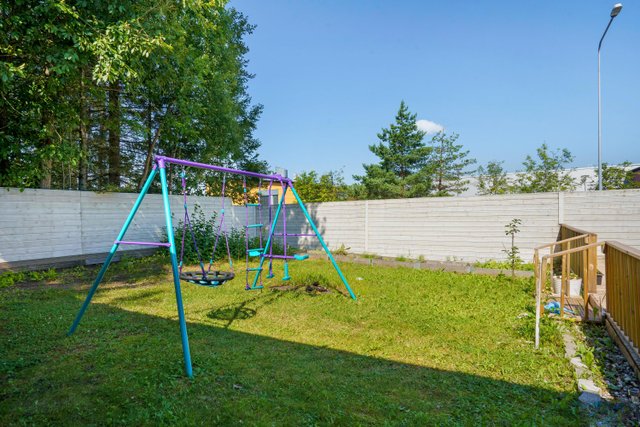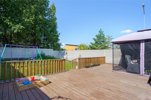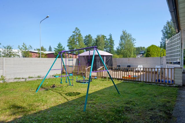 Tontilta löytyy sekä etu- että takapihan terassit, jotka kutsuvat nauttimaan ulkoilmasta. Läheiset koulut ja päiväkoti ovat vain kivenheiton päässä, mikä tekee arjesta sujuvaa lapsiperheille. Hyvät liikenneyhteydet ja lähellä sijaitsevat palvelut, kuten K-Supermarket, tekevät tästä kodista erinomaisen valinnan.