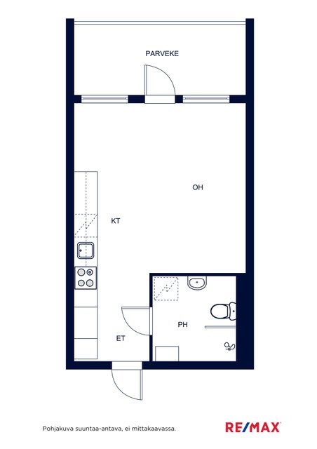 - Yhtenäistä tilaa keittiön kanssa. Kulku parvekkeelle.