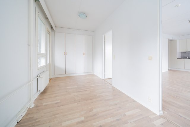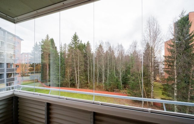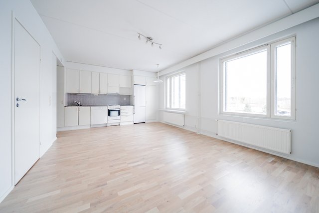 Asunnon pohjaratkaisu on avara ja valoisa. Olohuone ja keittiö muodostavat yhtenäisen tilan, jossa on juuri uusitut parkettilattiat. Keittiössä on ajattomat vaaleat pinnat. Makuuhuoneesta on käynti tilavalle etelään suuntautuvalle lasitetulle parvekkeelle, jossa voi nauttia auringonpaisteesta. Makuuhuoneeseen mahtuu parisänky, käynti huoneeseen sängyn molemmin puolin.