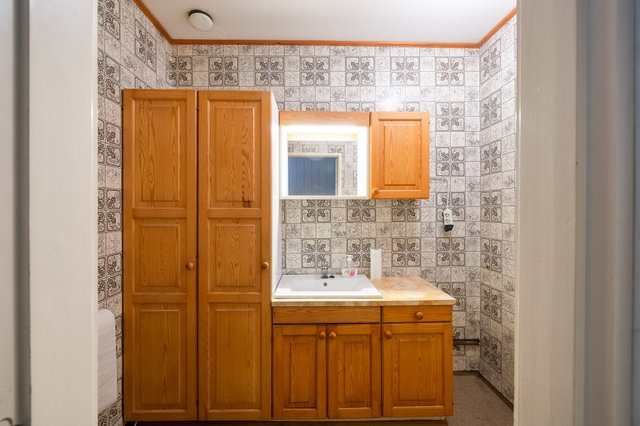 Ett personligt renoveringsobjekt söker nu en ny ägare. På tomten finns en tidigare affärsbygnad med bostad samt en stor hall på 98 m2.