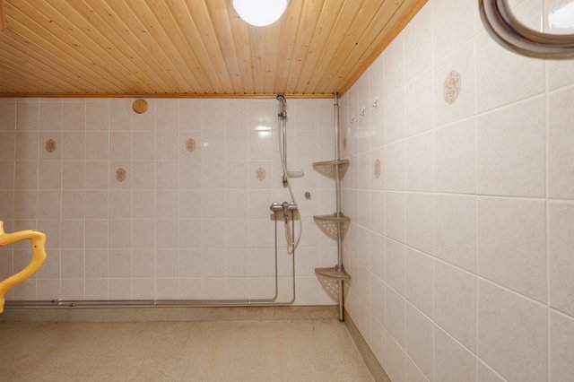 Autotalli on muutettu huonetilaksi ja on osittain kellaritilaa. Pintavesiä on jossain vaiheessa tulvinut tähän tilaan... kuivattu ja korjattu.