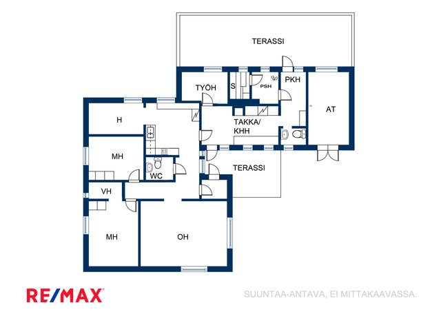 - Pesuhuoneen pukuhuoneesta kulku taka terassille.