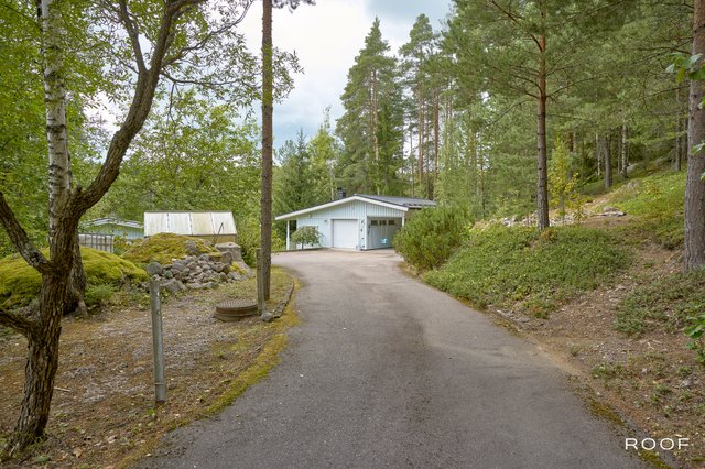Pihapiirissä sijaitsee vuonna 2011 valmistunut ulkorakennus, jossa on autotalli, autokatos, varasto sekä takkatupa makuuhuoneella - erinomainen tila vierasmajaksi tai etätyöskentelyyn.