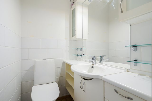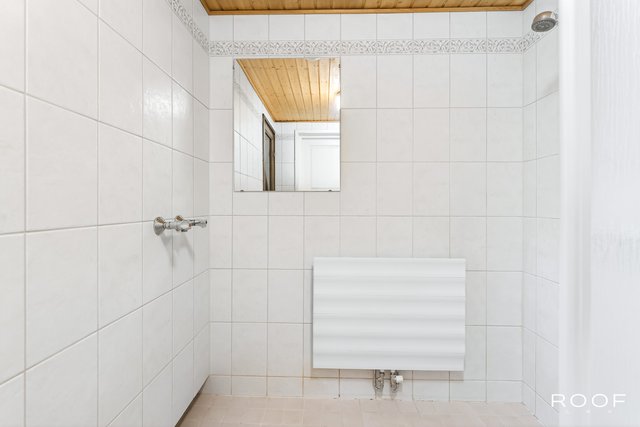 - Kylpyhuone uusittu noin vuonna 2005. Kylpyhuoneen patteri vaihdettu 10/2025. Varustus: suihku (2 vesipistettä, 1 suihku käytössä), pesukoneliitäntä, vesikiertoinen lattialämmitys, kiinteät valaisimet. Seinät: kaakeli Lattia: laatta