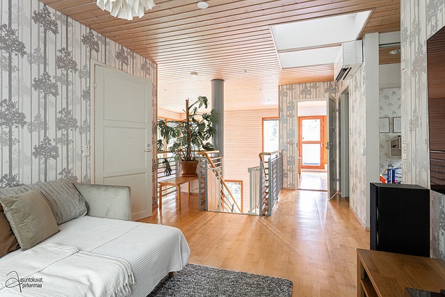 - Olohuoneen lattia vaahteraparketti, seinät maalattu/puu.