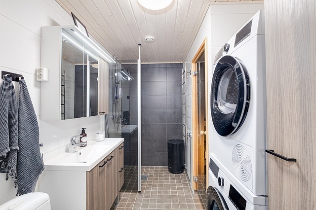 - Pesukoneliitäntä, wc-istuin, suihku, lattialämmitys, allaskaappi, ja kiinteät valaisimet