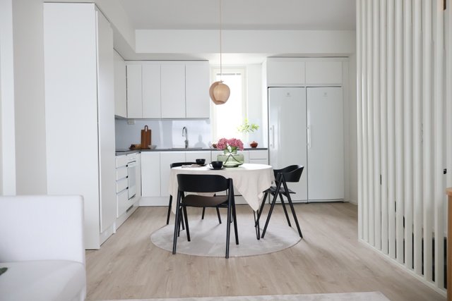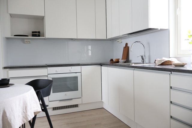 - Kodinkoneet valkoisia, astianpesukone kalustepeitteinen.